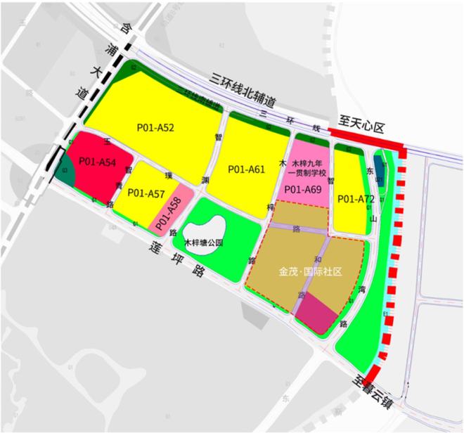 东山湾国际新城(一期)组团位于三环线以南,含浦大道以西,莲坪路以北,靳江河以西围合片区,共计经营性用地约620亩,其中首开区约12.62万方商住用地已于去年第二批次集中供地中被中国金茂摘得,规划金茂长沙国际社区项目。本次共推介了4宗住宅用地和1宗商业用地,建面约75.2万方,其中P01-A57、P01-A61、P01-A72住宅用地计划2022年第二批次出让,P01-A52住宅用地、P01-A54商业用地计划2023年出让。目前国际新城(一期)内没有在售住宅项目,周边生活配套待完善。
