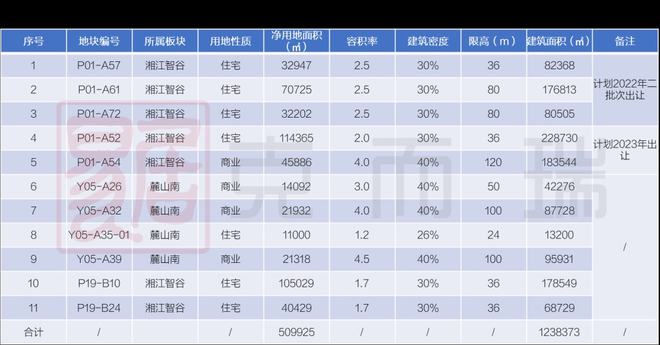 昨日,湖南智谷集团微信公众号发布了2022年的土地招商推介,涉及11宗地块,总建面约123.84万方,其中7宗为住宅用地,4宗为商业用地,地块均位于岳麓高新区,3宗住宅用地计划2022年二批次集中供地出让,1宗住宅用地和1宗商业用地计划2023年出让。